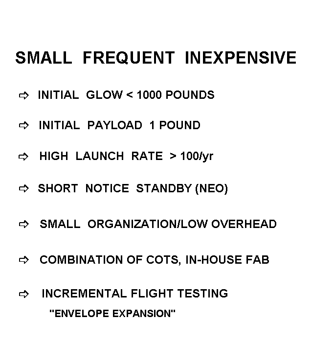 To develop a low cost basis from which an industry can evolve, a launch system must fly very frequently and be very small.