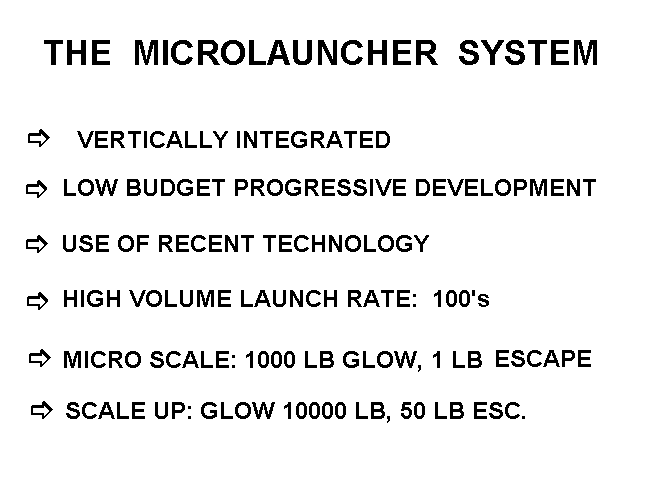 Microlaunchers is an attempt at a third approach to developing space access: to, with miniature size and budget, develop a vertically integrated spacecraft launch/deployment system.