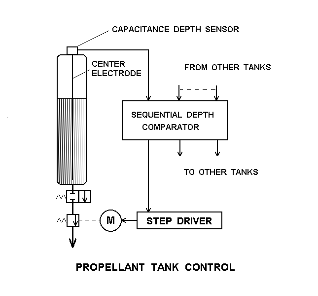 Each propellant tank is to be a self contained unit with a capacitive depth sensor, shutoff valve and a motor driven variable partially restricting valve.