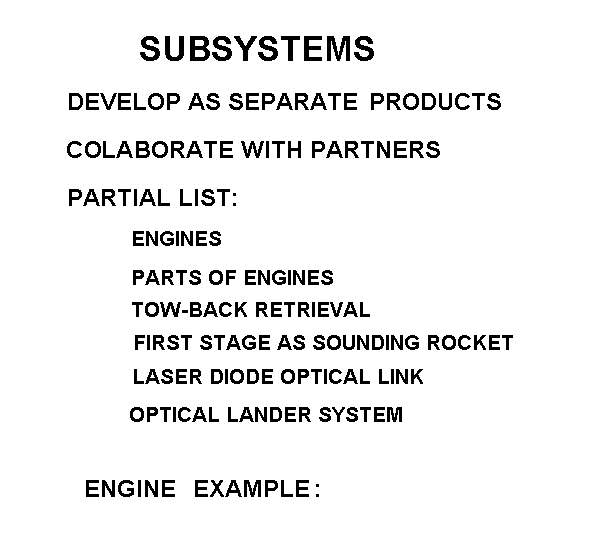 The project and funding of it will be done in a piecemeal fasion, possibly combining with partners interested in a development of one or more of these subsystems. SBIR or DARPA funding might likewise be sought for a subsystem as a separate project. In time, it is hoped that this will eventually add up to the Microlauncher System.